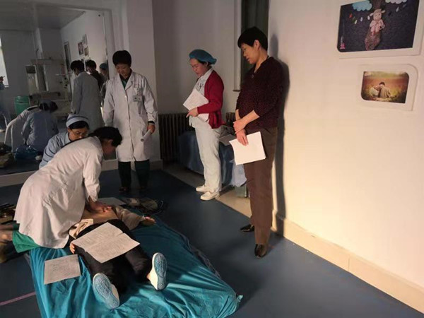 2018年10月10日,我院組織婦產(chǎn)科、手術(shù)室、社區(qū)醫(yī)護(hù)人員進(jìn)行基本生命支持急救知識(shí)培訓(xùn),隨即便展開(kāi)了為期一個(gè)月的心肺復(fù)蘇大練兵活動(dòng)。醫(yī)護(hù)人員利用休息時(shí)間進(jìn)行訓(xùn)練,為了達(dá)到精益求精的效果,大家針對(duì)判斷患者是否意識(shí)喪失、判斷有無(wú)自主呼吸、脈搏,進(jìn)行胸外按壓、電除顫、人工呼吸等操作要領(lǐng)進(jìn)行反復(fù)討論練習(xí)。
